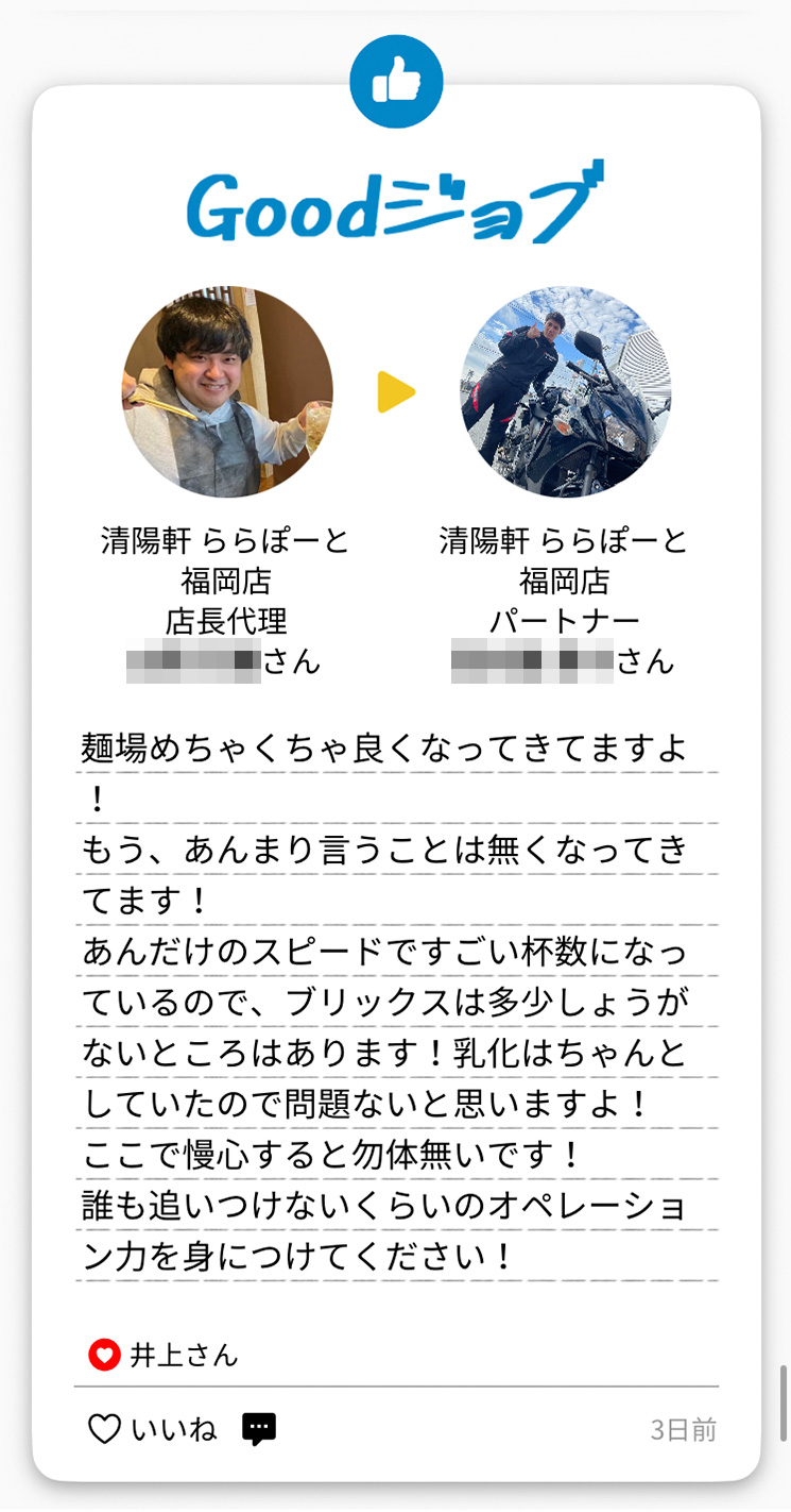今回ご紹介するのは、清陽軒 ららぽーと福岡店で生まれた「Goodジョブ」カードです。